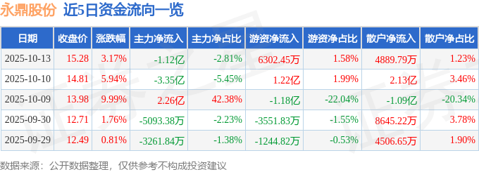 10月13日的资金流向数据方面,主力资金净流出1.12亿元,占总成交额2.81%,游资资金净流入6302.45万元,占总成交额1.58%,散户资金净流入4889.79万元,占总成交额1.23%。