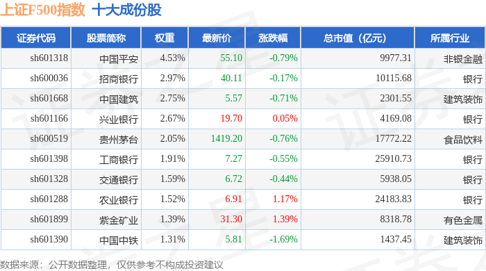 上证F500(000100)指数十大成份股详情如下: