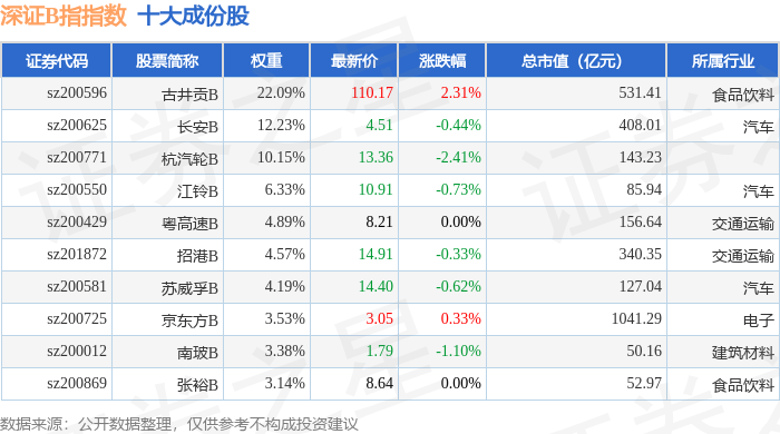 资金流向方面,深证B指(399108)指数成份股当日主力资金净流出合计611.19万元,游资资金净流出合计504.81万元,散户资金净流入合计1116.0万元。成份股资金流向详情见下表: