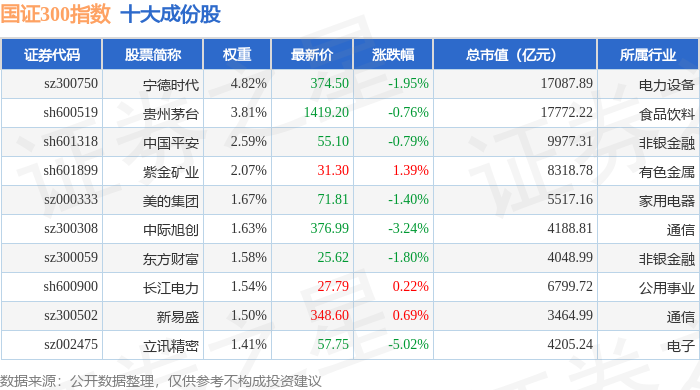 资金流向方面,国证300(399312)指数成份股当日主力资金净流出合计134.35亿元,游资资金净流入合计26.71亿元,散户资金净流入合计107.64亿元。成份股资金流向详情见下表: