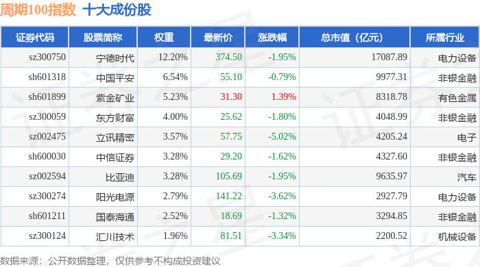 证券之星消息,10月13日,周期100(399402)指数报收于3717.4点,跌0.8%,成交2775.74亿元,换手率1.34%。当日该指数成份股中,上涨的有23家,北方稀土以10.0%的涨幅领涨,下跌的有77家,鹏鼎控股以5.23%的跌幅领跌。