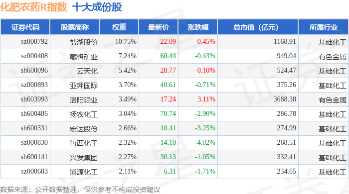证券之星消息,10月13日,化肥农药R(480035)指数报收于2513.51点,跌0.41%,成交294.68亿元,换手率2.27%。当日该指数成份股中,上涨的有24家,利民股份以7.77%的涨幅领涨,下跌的有52家,鲁西化工以4.02%的跌幅领跌。