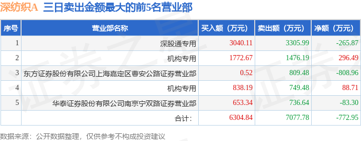 证券之星消息,沪深交易所2025年10月13日公布的交易公开信息显示,深纺织A(000045)因连续三个交易日内,涨幅偏离值累计达到20%的证券登上龙虎榜。此次是近5个交易日内第1次上榜。
