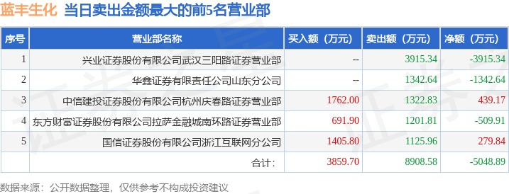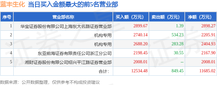 证券之星消息,沪深交易所2025年10月13日公布的交易公开信息显示,蓝丰生化(002513)因日振幅值达到15%的前5只证券,日换手率达到20%的前5只证券登上龙虎榜。此次是近5个交易日内第4次上榜。