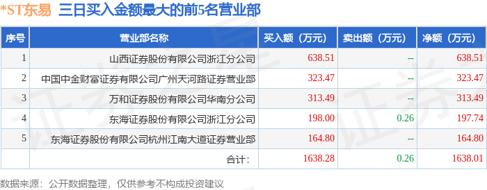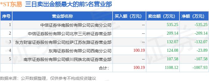 证券之星消息,沪深交易所2025年10月13日公布的交易公开信息显示,*ST东易(002713)因连续三个交易日内,涨幅偏离值累计达到12%的ST证券、*ST证券和未完成股改证券登上龙虎榜。此次是近5个交易日内第2次上榜。