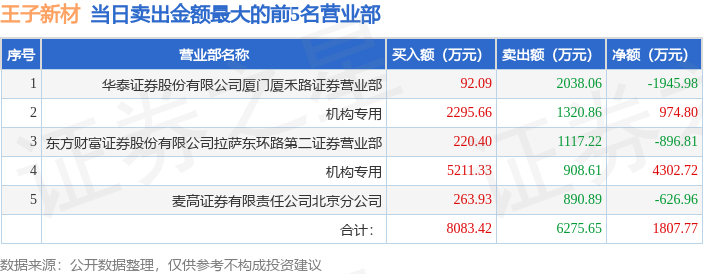 证券之星消息,沪深交易所2025年10月13日公布的交易公开信息显示,王子新材(002735)因日换手率达到20%的前5只证券登上龙虎榜。此次是近5个交易日内第1次上榜。