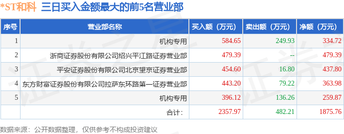 证券之星消息,沪深交易所2025年10月13日公布的交易公开信息显示,*ST和科(002816)因连续三个交易日内,涨幅偏离值累计达到12%的ST证券、*ST证券和未完成股改证券登上龙虎榜。此次是近5个交易日内第1次上榜。