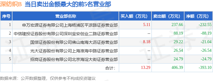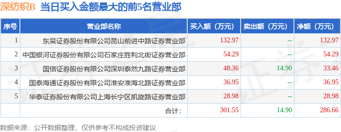证券之星消息,沪深交易所2025年10月13日公布的交易公开信息显示,深纺织B(200045)因日涨幅偏离值达到7%的前5只证券登上龙虎榜。此次是近5个交易日内第1次上榜。