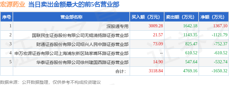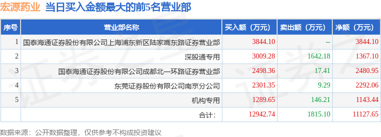 证券之星消息,沪深交易所2025年10月13日公布的交易公开信息显示,宏源药业(301246)因日涨幅达到15%的前5只证券登上龙虎榜。此次是近5个交易日内第1次上榜。