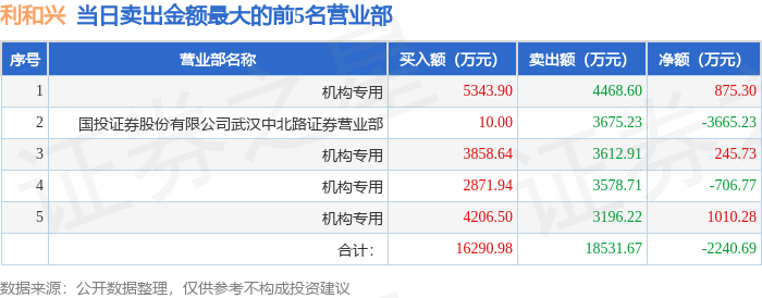 证券之星消息,沪深交易所2025年10月13日公布的交易公开信息显示,利和兴(301013)因日涨幅达到15%的前5只证券,日换手率达到30%的前5只证券,连续三个交易日内,涨幅偏离值累计达到30%的证券登上龙虎榜。此次是近5个交易日内第3次上榜。