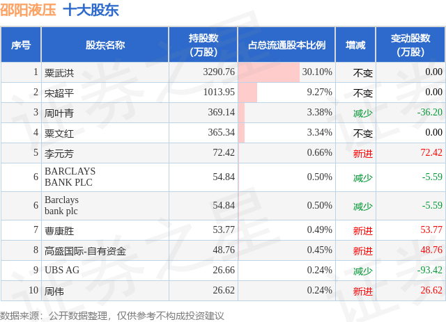 根据邵阳液压2025年中报公布的十大股东详情如下: