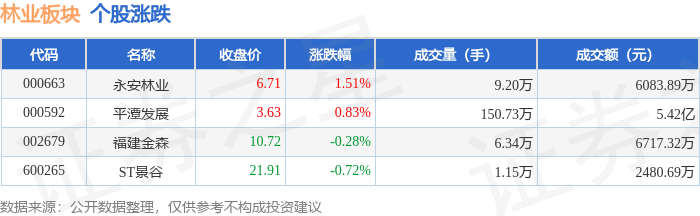 证券之星消息,10月13日林业板块较上一交易日上涨0.42%,永安林业领涨。当日上证指数报收于3889.5,下跌0.19%。深证成指报收于13231.47,下跌0.93%。林业板块个股涨跌见下表: