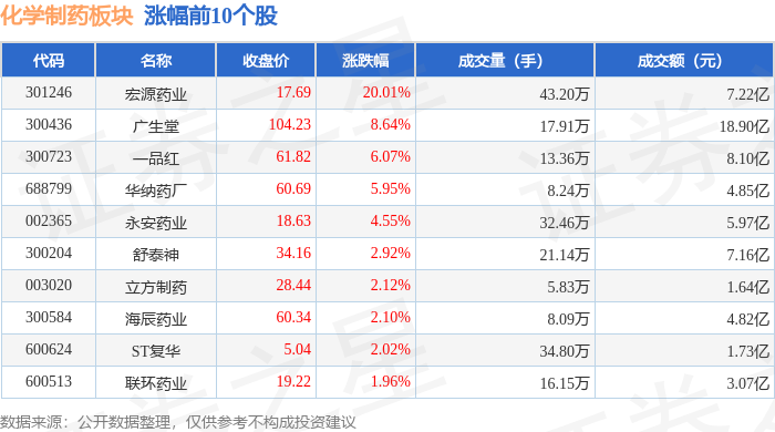 证券之星消息,10月13日化学制药板块较上一交易日下跌1.28%,ST诺泰领跌。当日上证指数报收于3889.5,下跌0.19%。深证成指报收于13231.47,下跌0.93%。化学制药板块个股涨跌见下表: