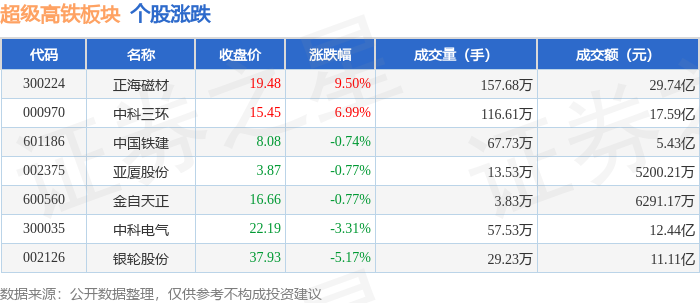 证券之星消息,10月13日超级高铁板块较上一交易日下跌0.03%,银轮股份领跌。当日上证指数报收于3889.5,下跌0.19%。深证成指报收于13231.47,下跌0.93%。超级高铁板块个股涨跌见下表: