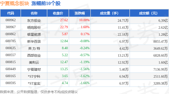 从资金流向上来看,当日宁夏概念板块主力资金净流出1.39亿元,游资资金净流入2512.18万元,散户资金净流入1.14亿元。宁夏概念板块个股资金流向见下表: