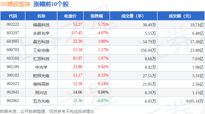 证券之星消息,10月13日3D感应板块较上一交易日下跌1.77%,歌尔股份领跌。当日上证指数报收于3889.5,下跌0.19%。深证成指报收于13231.47,下跌0.93%。3D感应板块个股涨跌见下表: