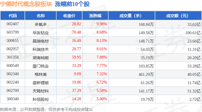 从资金流向上来看,当日宁德时代概念股板块主力资金净流出15.31亿元,游资资金净流出9.75亿元,散户资金净流入25.06亿元。宁德时代概念股板块个股资金流向见下表: