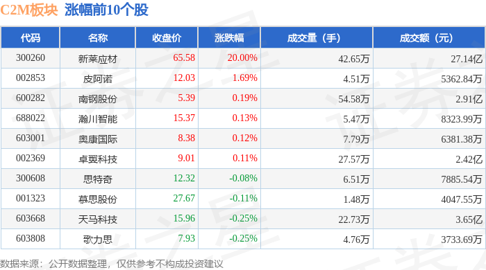 证券之星消息,10月13日C2M板块较上一交易日下跌0.96%,松霖科技领跌。当日上证指数报收于3889.5,下跌0.19%。深证成指报收于13231.47,下跌0.93%。C2M板块个股涨跌见下表: