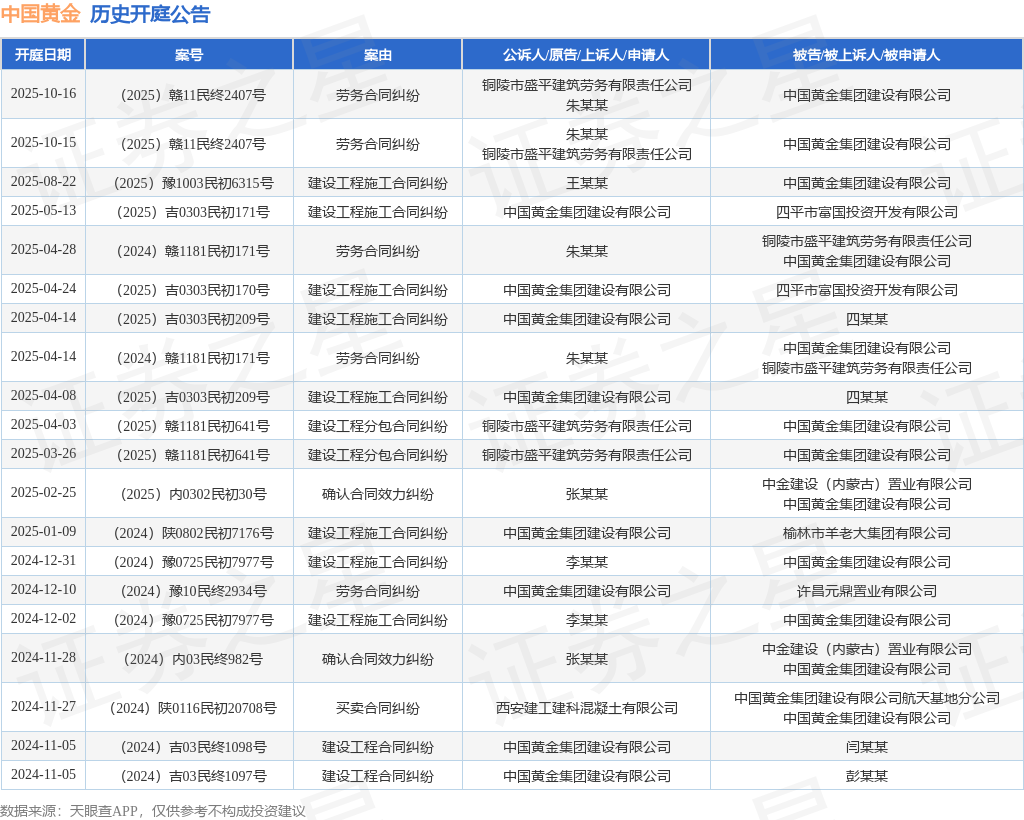 中国黄金作为被告/被上诉人的1起涉及劳务合同纠纷的诉讼将于2025年10月16日开庭
