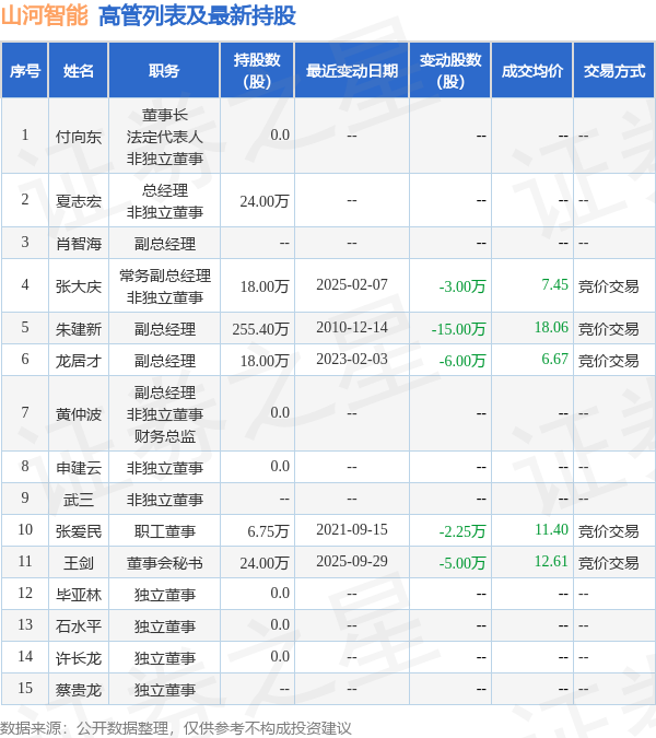 山河智能近半年内的董监高及核心技术人员增减持详情如下: