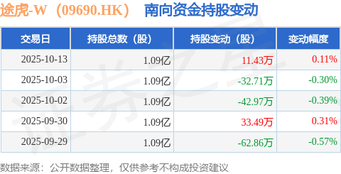 证券之星消息,10月13日南向资金增持11.43万股途虎-W(09690.HK)。近5个交易日中,获南向资金减持的有3天,累计净减持93.62万股。近20个交易日中,获南向资金增持的有12天,累计净增持190.6万股。截至目前,南向资金持有途虎-W(09690.HK)1.09亿股,占公司已发行普通股的13.2%。