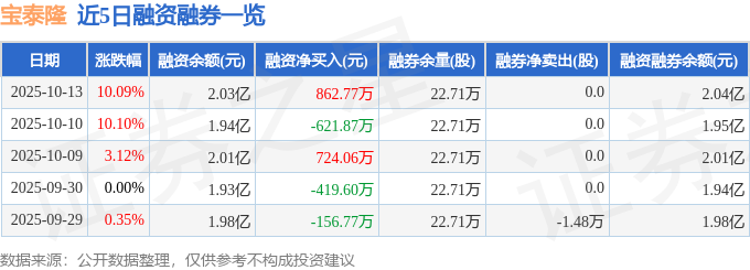 宝泰隆融资融券信息显示,融资方面,当日融资买入1807.71万元,融资偿还944.95万元,融资净买入862.77万元。融券方面,融券卖出0.0股,融券偿还0.0股,融券余量22.71万股,融券余额81.76万元。融资融券余额2.04亿元。