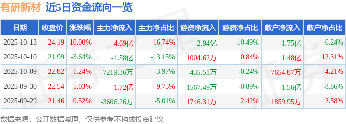 10月13日的资金流向数据方面,主力资金净流入4.69亿元,占总成交额16.74%,游资资金净流出2.94亿元,占总成交额10.49%,散户资金净流出1.75亿元,占总成交额6.24%。