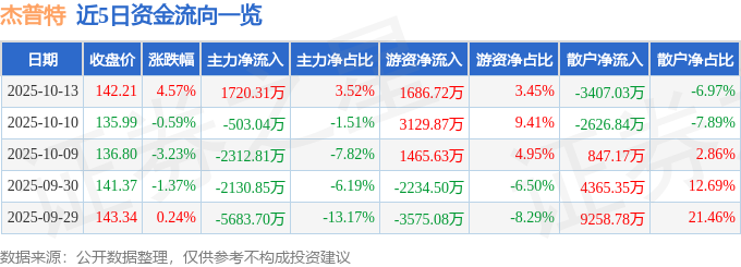 证券之星消息,截至2025年10月13日收盘,杰普特(688025)报收于142.21元,上涨4.57%,换手率3.71%,成交量3.53万手,成交额4.89亿元。