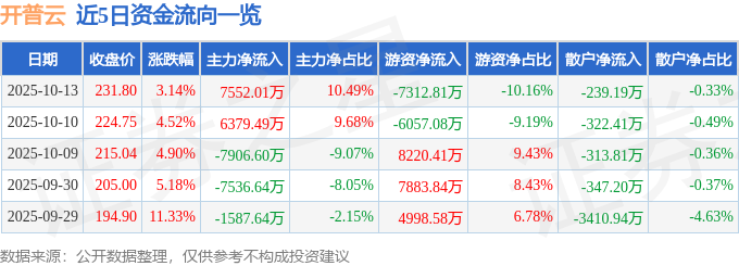 证券之星消息,截至2025年10月13日收盘,开普云(688228)报收于231.8元,上涨3.14%,换手率4.76%,成交量3.21万手,成交额7.2亿元。