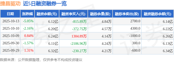 捷昌驱动融资融券信息显示,融资方面,当日融资买入5999.87万元,融资偿还6815.76万元,融资净偿还815.89万元。融券方面,融券卖出3100.0股,融券偿还400.0股,融券余量4.84万股,融券余额193.65万元。融资融券余额6.14亿元。