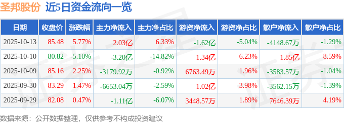 10月13日的资金流向数据方面,主力资金净流入2.03亿元,占总成交额6.33%,游资资金净流出1.62亿元,占总成交额5.04%,散户资金净流出4148.67万元,占总成交额1.29%。