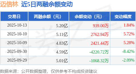 证券之星消息,10月13日,迈信林(688685)融资买入4393.98万元,融资偿还3458.58万元,融资净买入935.4万元,融资余额5.19亿元,近3个交易日已连续净买入累计4581.1万元。