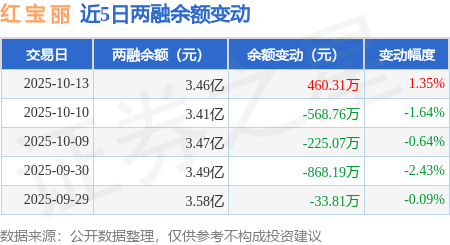 证券之星消息,10月13日,红 宝 丽(002165)融资买入2449.08万元,融资偿还1988.78万元,融资净买入460.31万元,融资余额3.46亿元。
