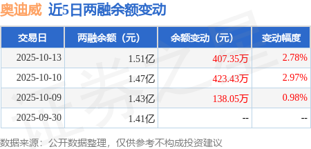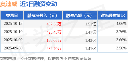证券之星消息,10月13日,奥迪威(920491)融资买入1155.87万元,融资偿还748.52万元,融资净买入407.35万元,融资余额1.51亿元,近3个交易日已连续净买入累计968.83万元。