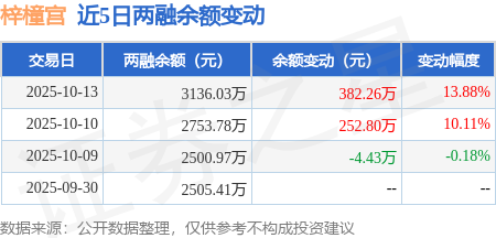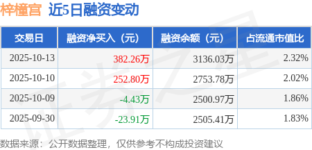 证券之星消息,10月13日,梓橦宫(920566)融资买入444.07万元,融资偿还61.81万元,融资净买入382.26万元,融资余额3136.03万元。
