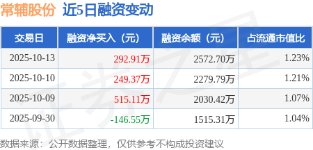 证券之星消息,10月13日,常辅股份(920396)融资买入1626.55万元,融资偿还1333.64万元,融资净买入292.91万元,融资余额2572.7万元,近3个交易日已连续净买入累计1057.39万元。