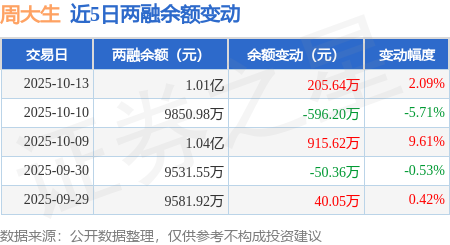 证券之星消息,10月13日,周大生(002867)融资买入996.53万元,融资偿还790.43万元,融资净买入206.1万元,融资余额1.0亿元。