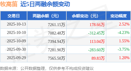 证券之星消息,10月13日,牧高笛(603908)融资买入626.19万元,融资偿还447.53万元,融资净买入178.66万元,融资余额7261.15万元。