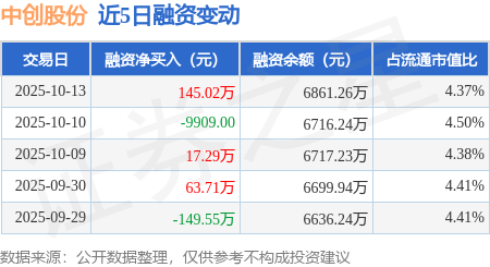 证券之星消息,10月13日,中创股份(688695)融资买入778.22万元,融资偿还633.2万元,融资净买入145.02万元,融资余额6861.26万元。