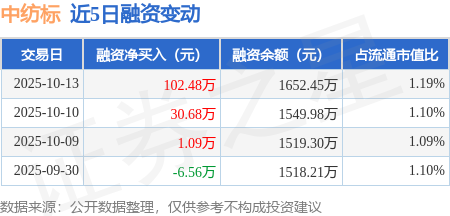 证券之星消息,10月13日,中纺标(920122)融资买入150.08万元,融资偿还47.61万元,融资净买入102.48万元,融资余额1652.45万元,近3个交易日已连续净买入累计134.25万元。