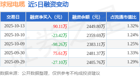 证券之星消息,10月13日,球冠电缆(920682)融资买入233.54万元,融资偿还143.43万元,融资净买入90.11万元,融资余额2449.8万元,近20个交易日中有11个交易日出现融资净买入。