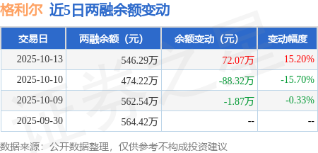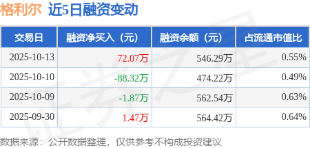 证券之星消息,10月13日,格利尔(920641)融资买入157.64万元,融资偿还85.57万元,融资净买入72.07万元,融资余额546.29万元。