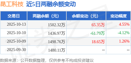 证券之星消息,10月13日,昆工科技(920152)融资买入90.62万元,融资偿还25.27万元,融资净买入65.35万元,融资余额1502.32万元。