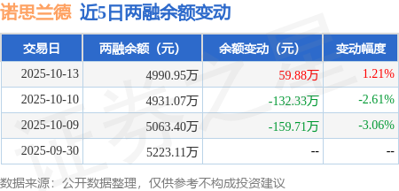证券之星消息,10月13日,诺思兰德(920047)融资买入654.89万元,融资偿还595.24万元,融资净买入59.65万元,融资余额4969.11万元。