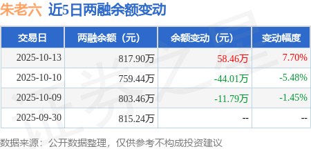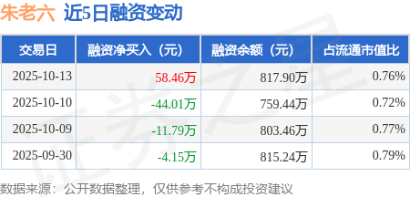 证券之星消息,10月13日,朱老六(920726)融资买入89.57万元,融资偿还31.12万元,融资净买入58.46万元,融资余额817.9万元。