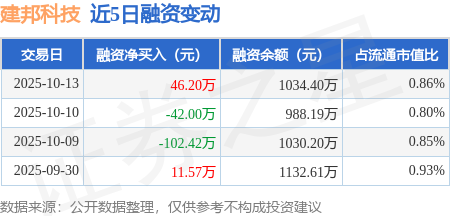 证券之星消息,10月13日,建邦科技(920242)融资买入105.67万元,融资偿还59.46万元,融资净买入46.2万元,融资余额1034.4万元。