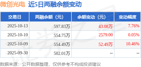 证券之星消息,10月13日,微创光电(920198)融资买入57.75万元,融资偿还14.67万元,融资净买入43.08万元,融资余额597.83万元,近3个交易日已连续净买入累计95.82万元。
