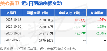 证券之星消息,10月13日,美心翼申(920833)融资买入95.86万元,融资偿还55.62万元,融资净买入40.24万元,融资余额2320.9万元。