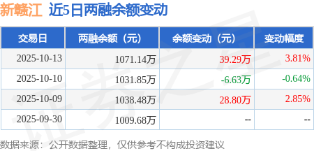 证券之星消息,10月13日,新赣江(920367)融资买入50.37万元,融资偿还11.09万元,融资净买入39.29万元,融资余额1071.14万元。