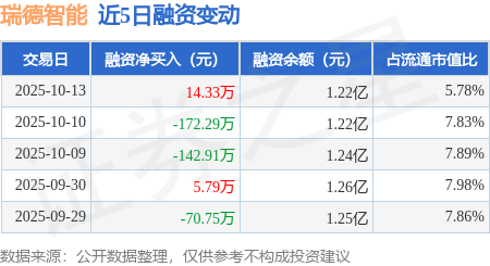 证券之星消息,10月13日,瑞德智能(301135)融资买入981.95万元,融资偿还967.61万元,融资净买入14.33万元,融资余额1.22亿元。